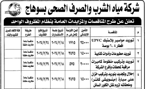 | الشركة | شركة مياه الشرب و الصرف الصحي بمطروح |