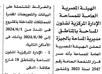 | الشركة | محافظة الجيزة – الهيئة المصرية العامة للمساحة |