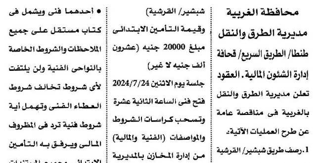 | الوصف | اعاده رصف طريق الشبرامنتيه |