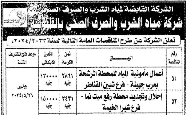 | الشركة | شركة مياه الشرب والصرف الصحي بالمنوفية |