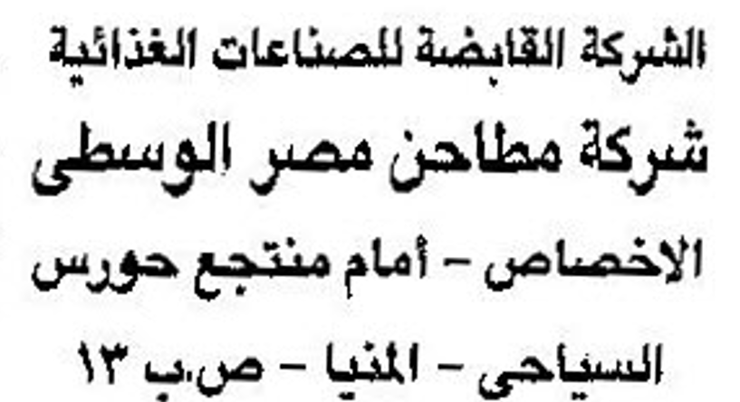 | الشركة | شركة مياه الشرب والصرف الصحي بالمنيا |
