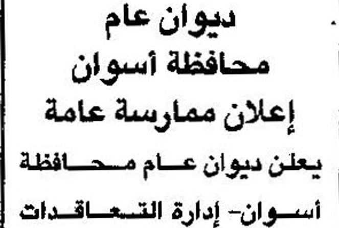 - مصدر المناقصة: ديوان عام محافظة المنيا